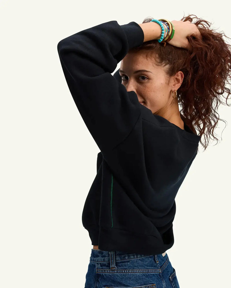 Soft and roomy with a cropped hem, this collegiate crew feels nostalgic yet new, like a broken-in favorite you just found again.