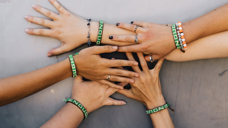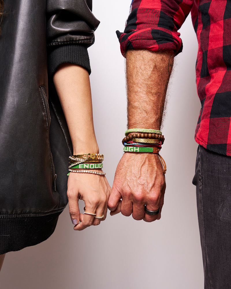 Our ENOUGH bracelets are purposely sold in pairs because the act of giving one to another person helps create a connection that makes both people feel more seen and whole. It’s also how we spread the message to more people.